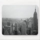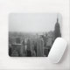 A black and white image of the Empire State Building and the various iconic buildings that surround it.