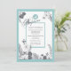 This lovely floral has a white background and is framed in blue. It features a dove which can be dragged to any location, made larger or smaller (+-), or eliminated making this a versatile invitation. <br/><br/>The card is easy to customise with your wording, font, font colour, paper shape options and choice of six paper types.<br/><br/>Not exactly what you're looking for? All our products can be custom designed to meet your needs at no extra charge.<br/><br/>Simply contact us at askcottonlamb@gmail.com.<br/><br/>Coordinating products available: Just ask us!
