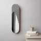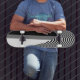 Pictured is a black and white op art design