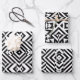 Set of three wrapping paper sheets with different patterns. Each sheet features a seamless pattern made of black and white geometric shapes.