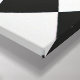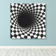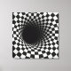 A tunnel-like optical illusion is created using a black and white chequered pattern, giving a dizzying sense of depth