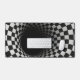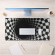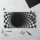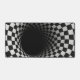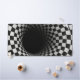 A tunnel-like optical illusion is created using a black and white chequered pattern, giving a dizzying sense of depth