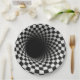 A tunnel-like optical illusion is created using a black and white chequered pattern, giving a dizzying sense of depth