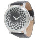 A tunnel-like optical illusion is created using a black and white chequered pattern, giving a dizzying sense of depth