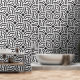 Black and white ornamental geometric tile wallpaper