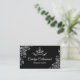 Glam pageant coach business card done in black, with white floral flourishes and a white stylised crown. Personalise all the text for your pageant business.