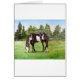 I have a black and white horse with similar markings. He's beautiful and so is the card. I did not customize this card so there was no printing.
