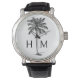 Black and White Palm Palmetto Tree Monogram Watch