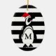 Black and White Penguin and Stripes Monogram Ceramic Tree Decoration