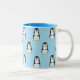 Black and White Penguin Pattern on Light Blue Two-Tone Coffee Mug