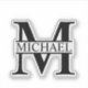 feature personalised black monogram in classic serif font style with box of name in the middle of monogram.