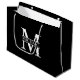 featuring personalised monogram in white classic serif font style with box of name in the middle of monogram on black background.
