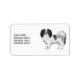 Destei's original cartoon illustration of a cute black and white coat colour Phalène breed dog. Next to the dog there is a personalizable text area.