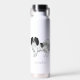 Black And White Phalène Dog With Personalised Name Water Bottle