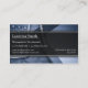 The business card has been created from a blue / grayscale photo of a Pen, Calculator and Tablet on a desk, with the banners drawn over the top.
