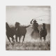 Black and White photo of a Cowboy Lassoing Horses Magnet
