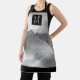 This apron features a black and white photo of dewy grape leaves and customisable initial.