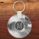 Black and White Photo of Grape Leaves Initial Grey Key Ring