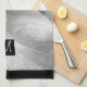 Black and White Photo of Grape Leaves Initial Grey Tea Towel