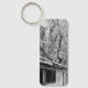 Black and White Photo of Rustic Snowy Winter Scene Key Ring
