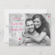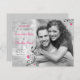 The text and engagement photo on these black and white photo save the date cards are fully customisable. You can change them both using "personalise it". For more extensive changes to the card, including changing the font, font colour, font size, or text and/or photo placement, use the "customise it" option. The colours on this card are watermelon pink, black, and white. It would be great for a wedding with a black and white theme where you intend to add traces of pink for colour. Make sure to check out the available paper type options as well. You can also easily change the text and turn this into a photo engagement announcement.