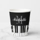 Black and white grand piano keys custom paper party cups. Personalised drink ware for piano player, musician, pianist, music teacher, students, kids etc. Stylish script typography template. Fun disposable cups for friends and family. Add your own monogram, name or funny quote. Lids optional. Elegant design for kids and adults. Great for Birthday party, classical music event, wedding and more.