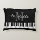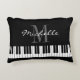 Black and white piano keys accent decor pillow. Elegant monogram design with stylish script typography and name initial letters. Cute gift idea for piano teacher, pianist, musician, music school lessons etc. Suitable for men women and kids. Decoration cushion for sofa, couch or bed in bedroom. Classical instrument.