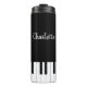 Thermal tumbler contains a piano keyboard design and a text "Charlotte", this thermal tumblere is a personalised gift you can change the text "Charlotte" to your name, you can still add/remove more texts as you want and change fonts. This thermal tumbler can be given as gift for music teachers, piano instructor, piano player, piano composer, musician, piano lover, men, women, kids.