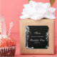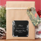 This elegant label is perfect for your candle making, food jar label, or other DIY project. The background is black with an illustration on the left side. The illustration is of three tall pine trees in shades of white and grey. At the bottom there is a white silhouette of a bear and a baby cub. On the right side there are two more trees and a deer and baby.