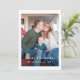 This simple and classic holiday photo card features a one photo front with elegant white typography, and a rustic black and white plaid pattern on the back.