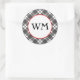 Black and White Plaid Pattern Editable Monogram Classic Round Sticker