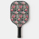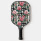 Black and White Plaid With Leafy Pink Camellias Pickleball Paddle