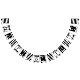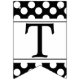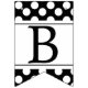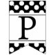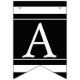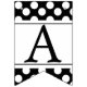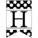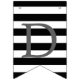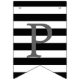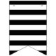 This pretty and elegant bunting flag is perfect for birthday parties, showers, anniversary parties and any other celebration. Three patterns are displayed; one with black and white polka dots and two others with different versions of black and white stripes. You customise the lettering.