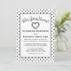 This sweet and simple invitation features black and white polka dots highlighting a hand drawn black heart and your wedding information printed in script and easy-to-read black fonts highlighted against a crisp white background.