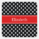 Black and White Polka Dots Red Name Monogram Square Sticker