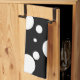 A black background with white polka dots. This classic design is sure to match any kitchen decor. Matching napkins and placemats are also available.