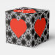 This elegant design makes a perfect favour box for Valentine's Day or any special occasion. Featuring a black and white lace-like patter, this favour box has red hearts on three sides of the box. The red heart, on the top flap, has text that reads "Be My Valentine". You can be customised this text with your own message.