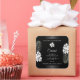 Make a lasting impression with this elegant and exotic product label design featuring cute white hawaiian flowers and palm leaves on a black background. A cool palm leaf shadow matching to the border frames.