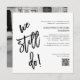 These simple, modern wedding anniversary/vow renewal invitations feature trendy black script typography that says "we still do", on a white background for a very stylish look. There is a scannable QR code so that guests can visit your website, and a photo on the back.