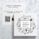 Black and White QR Code Website Modern Botanical Square Business Card