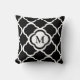 Black And White Quatrefoil Pattern Custom Monogram Throw Pillow.