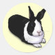 A graphic of an adorable black and white rabbit with a soft pink nose and wisps of fur. A great image for rabbit lovers, children and those that are kids at heart.
