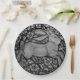 My original, copyrighted running black and white rabbit ceramic is newly reinterpreted as an upscale paper plate.