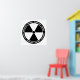 White poster with black radiation symbol surrounded by "Danger - Radiation" in repeating text.