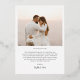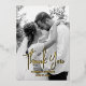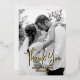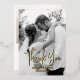 Extend your heartfelt thanks with this exquisitely personalised Thank You wedding card. Featuring elegant black and white photos of the newlyweds and the option for real foil print accents in your choice of gold, silver, or rose gold, this card emanates timeless sophistication. Turn it over to discover a heartfelt message section that you can tailor to your liking. With limitless customisation possibilities, this card offers a unique and meaningful way to convey your gratitude with a personal touch. Choose the foil shade that perfectly complements your style and make a lasting impression with this truly exquisite Thank You card. Your guests will be touched by this extra touch of elegance and appreciation.