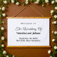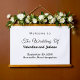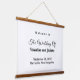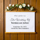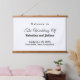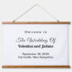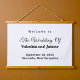 Rectangle hanging tapestry with black text on white background for couples seeking a classic and timeless colour combination that can complement various wedding themes. It is also suitable for couples who prefer a text based design without background elements for readability. The black text contrasting on the white background also improves readability. The text is centre aligned and the fonts used are calligraphy, script and sans serif. Calligraphy and script fonts are used to enhance the design while the sans serif font is used to enhance readability. Customise it by typing the names of the bride and groom, date and location of the wedding. You can also change the wording in the design tool including the font style, font colour and background colour. Please check the appearance after typing text. If the appearance is pleasing to you, you can place your order now. If you need to resize or reposition the text, please adjust in the design tool. A hanging tapestry to welcome the guests and enhance the wedding venue. To the bride and groom, congratulations on your engagement! Wishing you both a lifetime filled with love and happiness.
