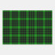 A wrapping paper sheet set with a plaid pattern in black on three background colours, white, red and green. Customise the background colours, pattern sizes among other options.
