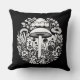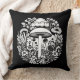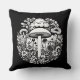 Black and White Retro Mushrooms and Flowers Cushion