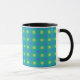 A chic black and white Ringer Mug with a Polka Dot Blue Moons pattern in Neon Green and Dazzling Blue on an Emerald Green background. Part of the Posh & Painterly 'Blue Moons' collection.