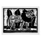 Black and White Roaring Lion Lino Cut Poster